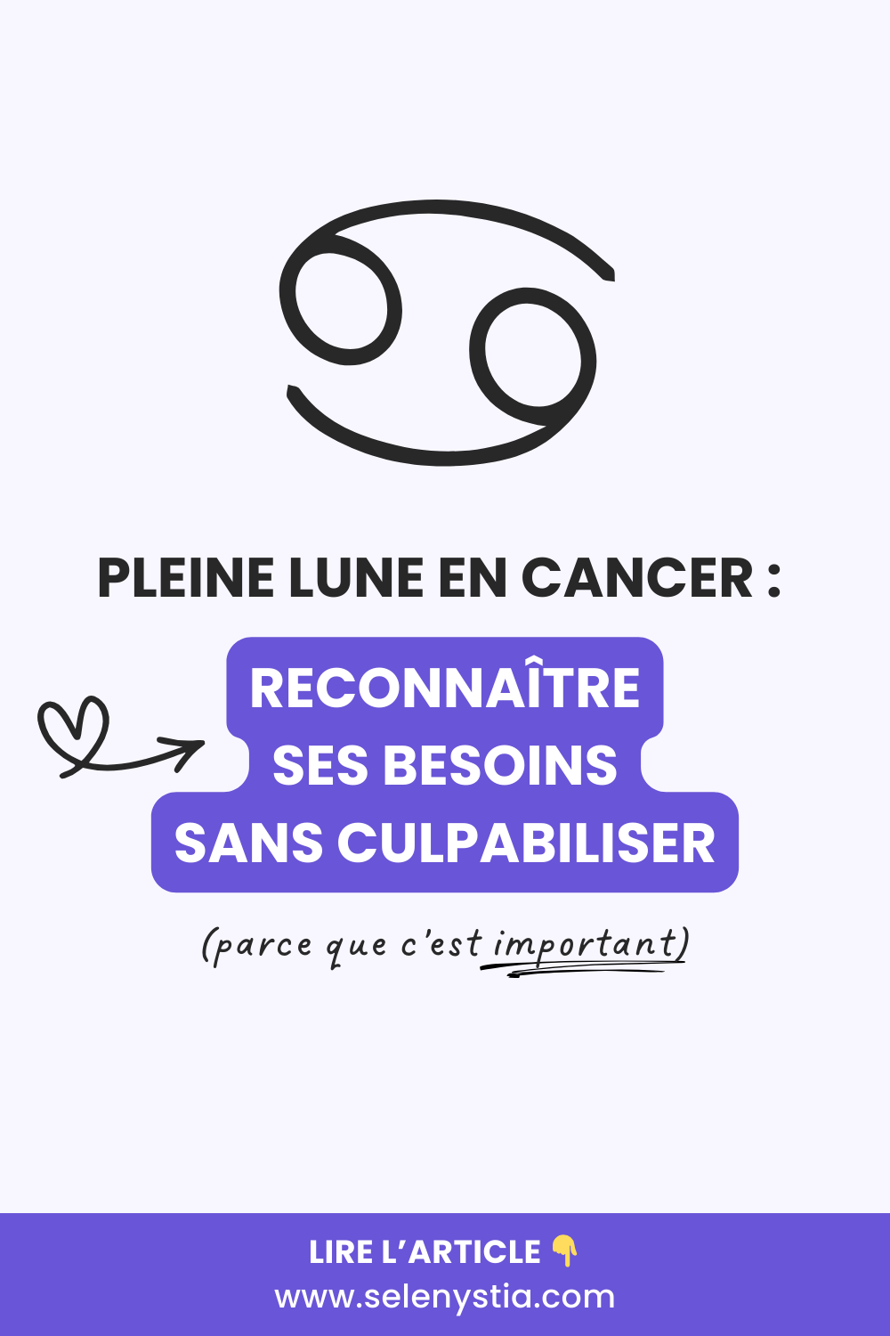Quand une Pleine Lune en Cancer arrive, la Lune éclaire la partie Cancer, c’est à dire les besoins du corps, du cœur et souvent le besoin de “se sentir en sécurité” (pas forcément matériellement : parfois, c’est juste émotionnel).